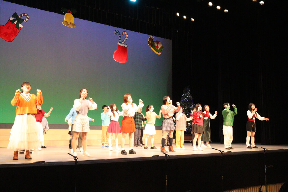 今年は、「あなたの心に素敵な贈り物」をテーマに3部構成の演目で、クリスマスメドレーや合唱組曲「くるみ割り人形」など、ダンスを交えながら1年間の練習の集大成を観客の皆さまに披露しました。