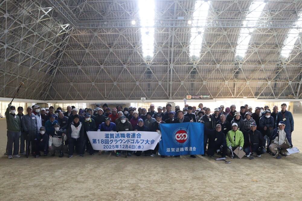 第18回グラウンドゴルフ大会を2026年12月4日(木)に連合滋賀、労福協、近畿労働金庫、こくみん共済coop、住宅生協の後援により、竜王町総合運動公園ドラゴンハットにて開催し滋賀退職者連合加盟組織の9組織から男性72名、女性14名の計86名が参加し開催しました。