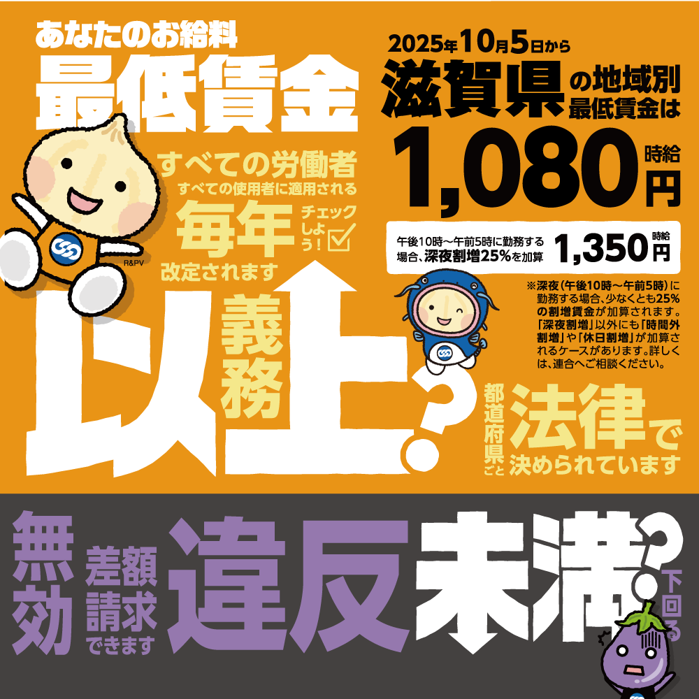 2025年10月5日から滋賀県最低賃金が時給1080円へ改訂されます