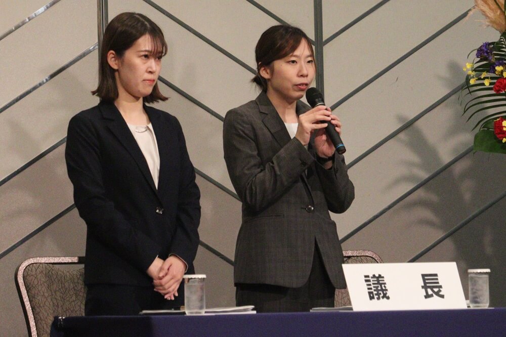 議長に宮村知華氏(UAゼンセン)、山本聖奈氏(私鉄県協)の両氏を選出し、本大会開催の初めに連合滋賀執行部を代表して白木宏司連合滋賀会長が挨拶を行いました。