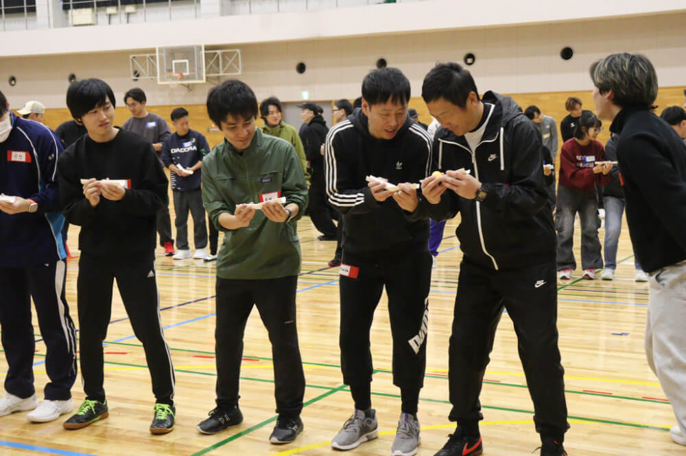 | 第1種目 | トイレットペーパーの芯を使って「ピンポン玉リレー」 |
