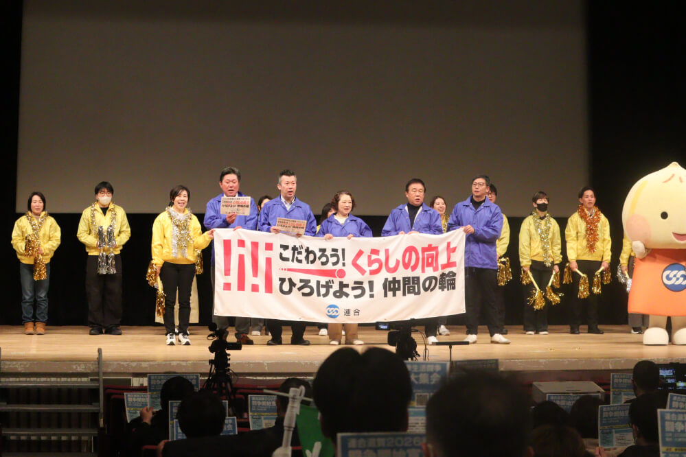 『こだわろう!くらしの向上 ひろげよう!仲間の輪』のスローガンのもと、働く仲間約1,200名が集まり、2026春季生活闘争のスタートに向け、連合組合員の意志結集をはかるとともに、地域社会へアピールする開始宣言大集会を大津市民会館にて2026年2月7日(土)に開催しました。